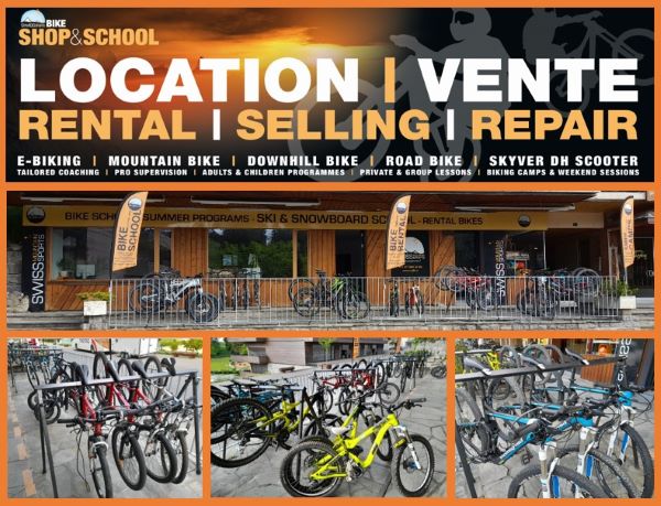 SMS Bike School & Shop est un magasin de location de vélo et de réparation toutes marques situé au centre de la station de Crans-Montana, à la route du Rawyl 31. Plusieurs formules de location sont proposées, de 1 heure à plusieurs jours, par type de vélos à travers plusieurs gammes de prix.